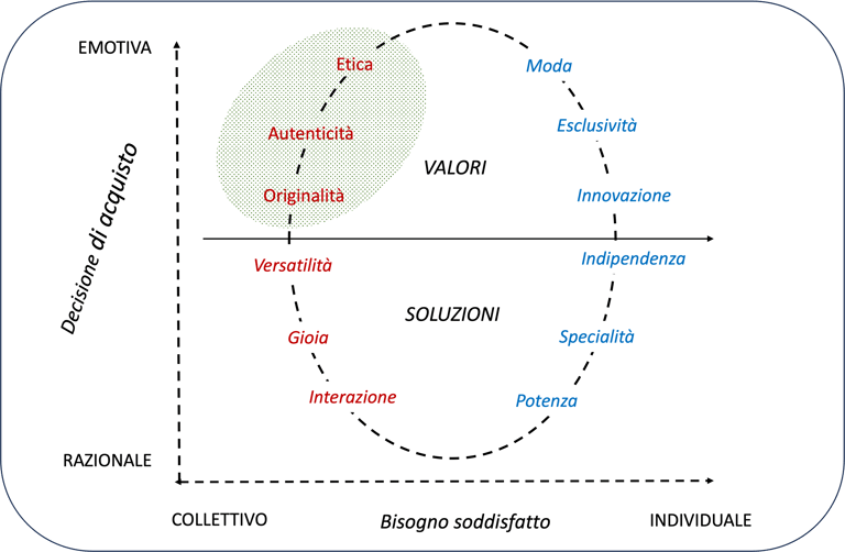 Etica (7,4%): è intesa come dovere morale e impegno concreto a favore dell’ambiente e della società.