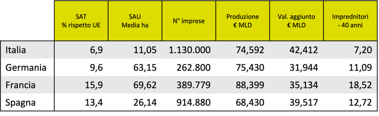 L’Italia presenta il più alto valore aggiunto agricolo dell’UE, grazie all’elevata qualità delle produzioni, pur con superfici coltivate molto limitate.