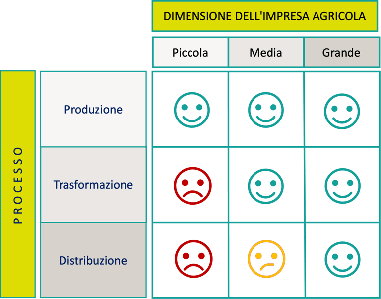 Attualmente solo poche grandi imprese agricole possono affrontare con autonomia strategica e potere contrattuale tutte le fasi del processo di produzione agroalimentare.