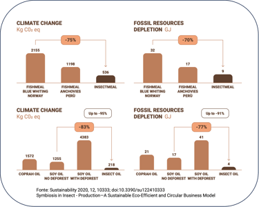 Le produzioni derivate dall'allevamento di insetti, inoltre, permettono di ridurre in modo sostanziale la dipendenza dalle importazioni di proteine per produrre mangimi.