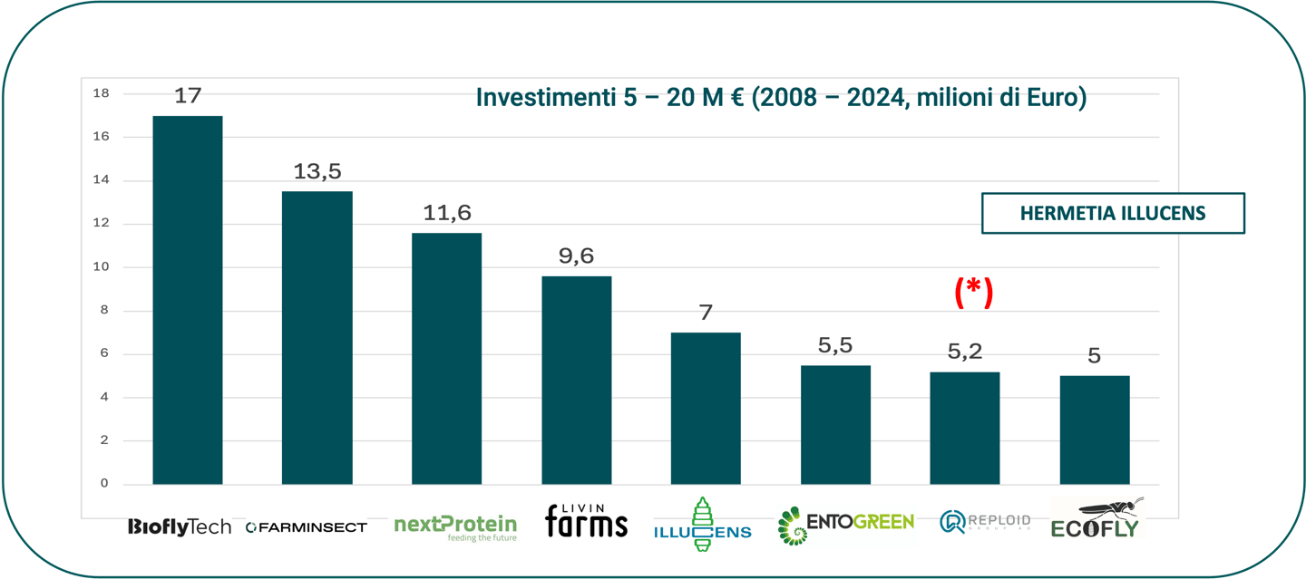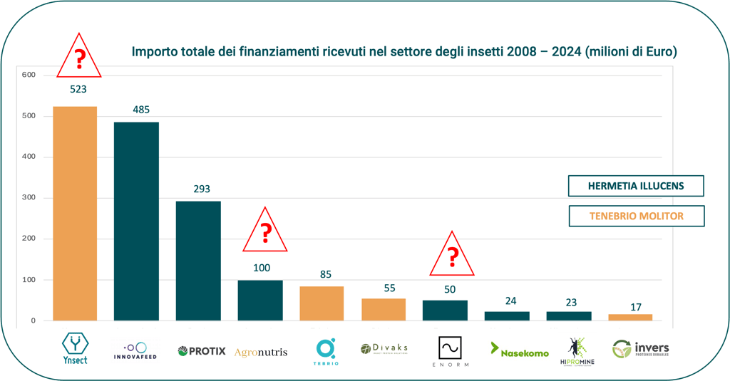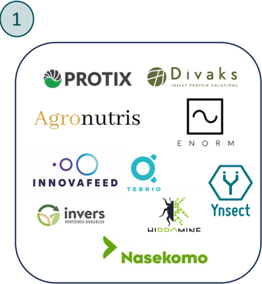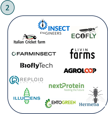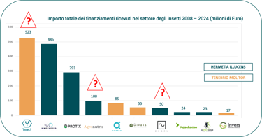 Innovafeed, Nasekomo, Divaks, Tebrio e Hipromine non mostrano invece difficoltà significative; in particolare Tebrio ha recentemente chiuso con successo un round di finanziamento da 30 milioni di euro.