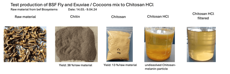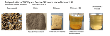 Il chitosano prodotto con le larve di Hermetia ha mostrato di produrre chitina e chitosano di una qualità migliore rispetto a quella commerciale ottenuta dai gamberetti.