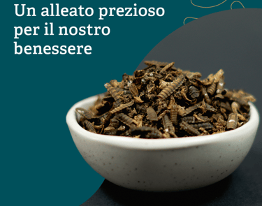 Il frass di insetto è il residuo derivato dal processo di bioconversione delle larve ed è composto dal cibo non digerito, dalle deiezioni e dai residui degli esoscheletri.